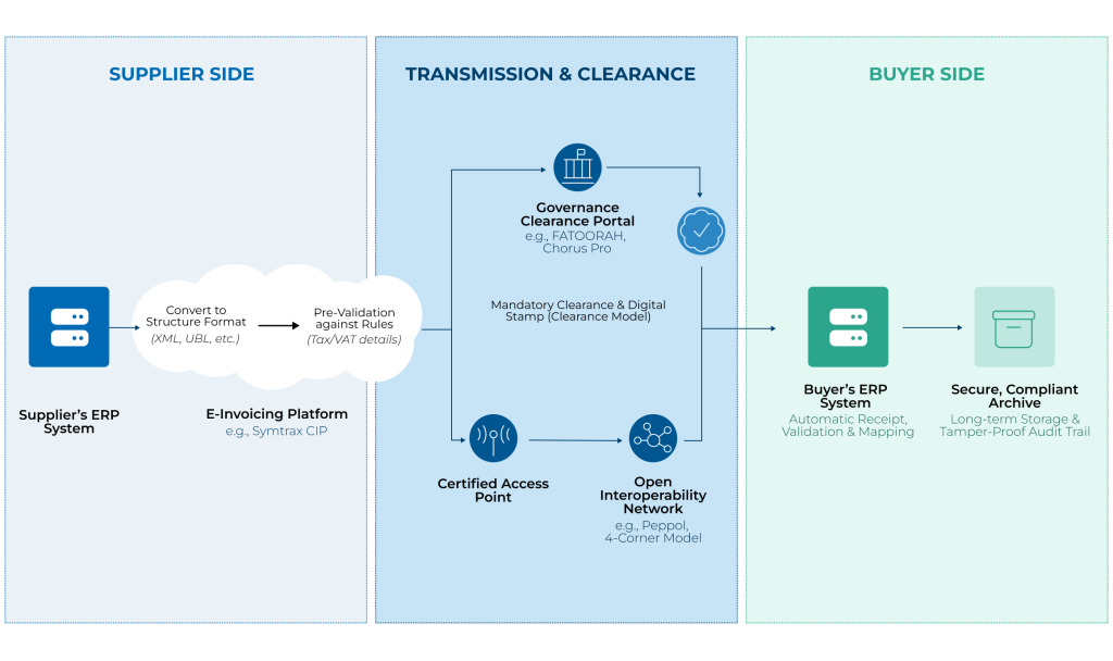As this shift accelerates, markets are focusing on standardized exchange models, ranging from direct exchange (the 2-corner model) to certified multi-network systems (the 4-corner model), to ensure consistent, secure invoice delivery. Open interoperability networks such as PEPPOL are becoming central to these models, enabling standardized B2B and B2G invoice exchange across borders and systems.
